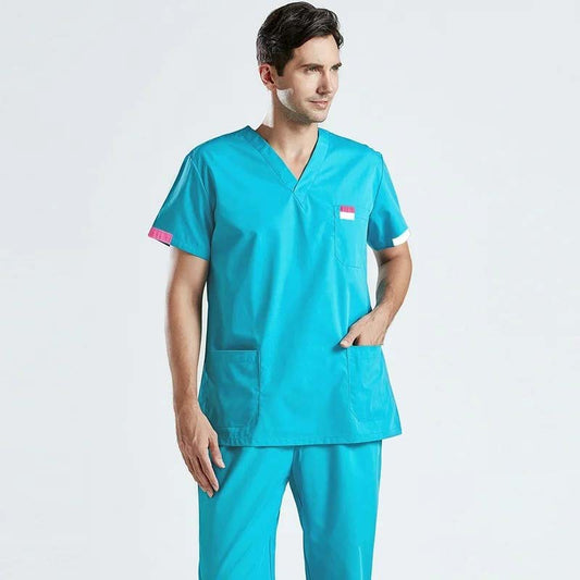 Medical Uniforms Men Scrub Top Cotton Short Sleeve Nursing Clothes Doctor