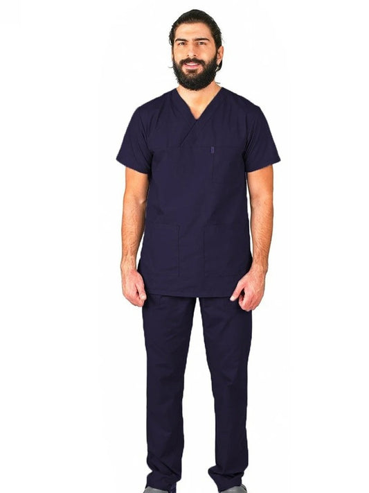 Men Scrub Set Plus Size Short Sleeve Classic V Neck Top Doctor Nurse Surgery Room Uniform